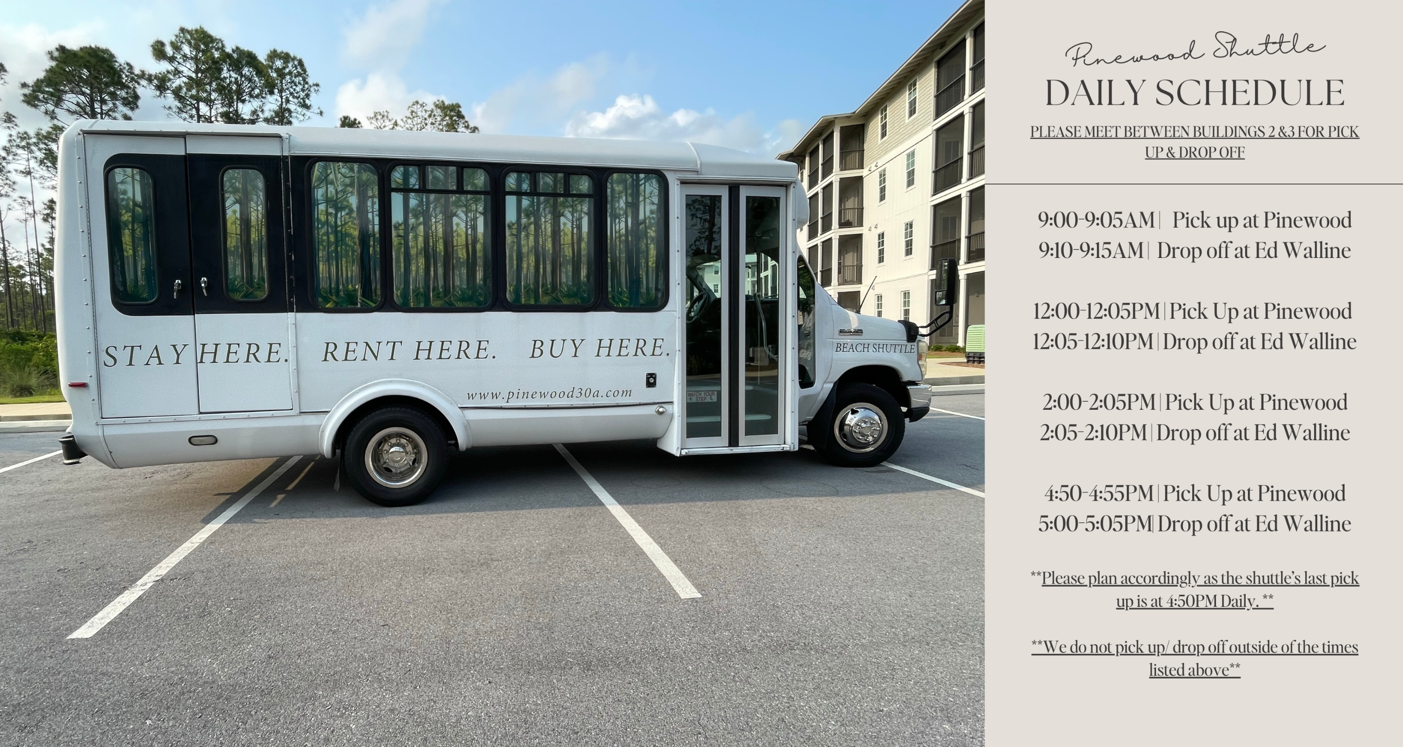 - Complimentary Beach Shuttle: Easily get to and from the beach with the complimentary shuttle, ensuring convenient access to the stunning shores of 30A.